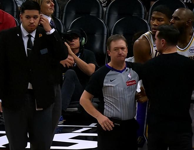 安保出动!詹姆斯和狄龙吵架,前者抓着裁判左手喋喋不休吃到技犯